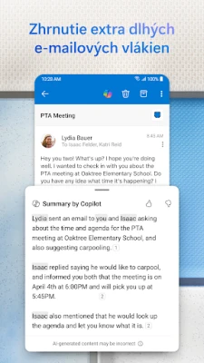 Prekročte hranice e-mailu a zažite plne integrovaný pracovný priestor. Outlook pre Android vám umožní bez námahy prepínať medzi e-mailami a kalendárom, čo vám uľahčí plánovanie schôdzok alebo zdieľanie vašej dostupnosti len pár ťuknutiami. Potrebujete poslať dôležitý dokument? Pripojte súbory priamo z vášho úložiska jednoducho a rýchlo. Navyše, vďaka priamej integrácii s aplikáciami Word, Excel a PowerPoint máte všetky nástroje pre prácu na cestách vždy poruke, čo zaručuje neprerušovanú produktivitu kdekoľvek.